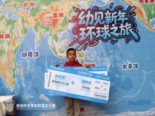冬阳和煦,岁律更新,在辞旧迎新的冬日暖阳中,郑师新街坊幼儿园以一场名为“幼见新年·环球之旅”的元旦主题活动,为孩子们开启了一扇通往世界的窗口。